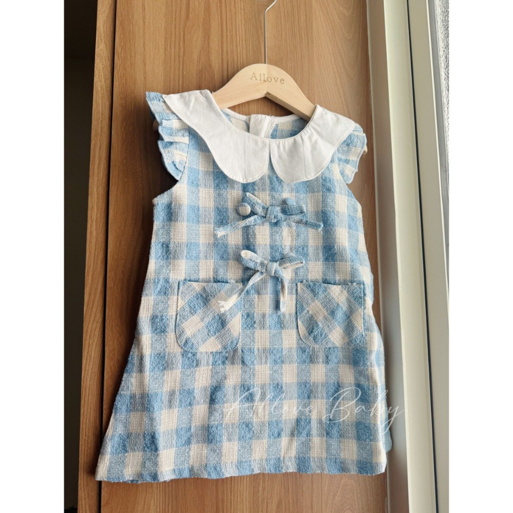 圓領藍色格子裙