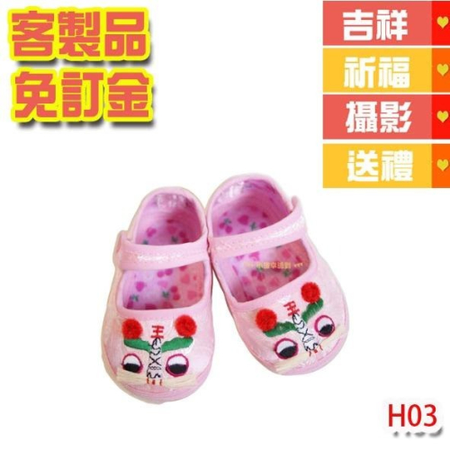 客製品 抓週粉紅虎頭鞋 12公分 抓周表演戲劇服 H03