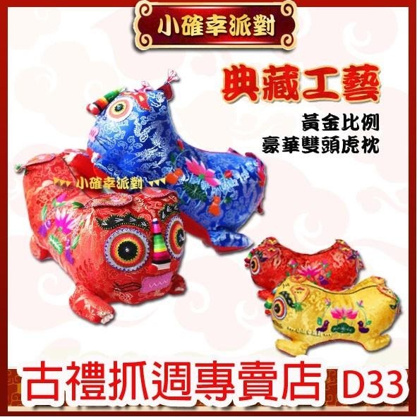 抓週禮 雙頭虎爺 虎頭枕 開運小物 長命富貴 布老虎 滿月百天周歲祈福禮 手工藝刺繡 D33
