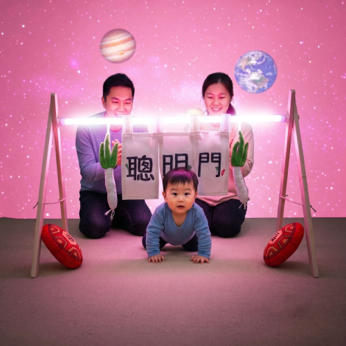 誰說抓周只能紅通通、亂糟糟?我們把聰明門升級了!全台獨家「七彩炫光燈帶」,讓寶寶在穿越瞬間自帶主角光環。