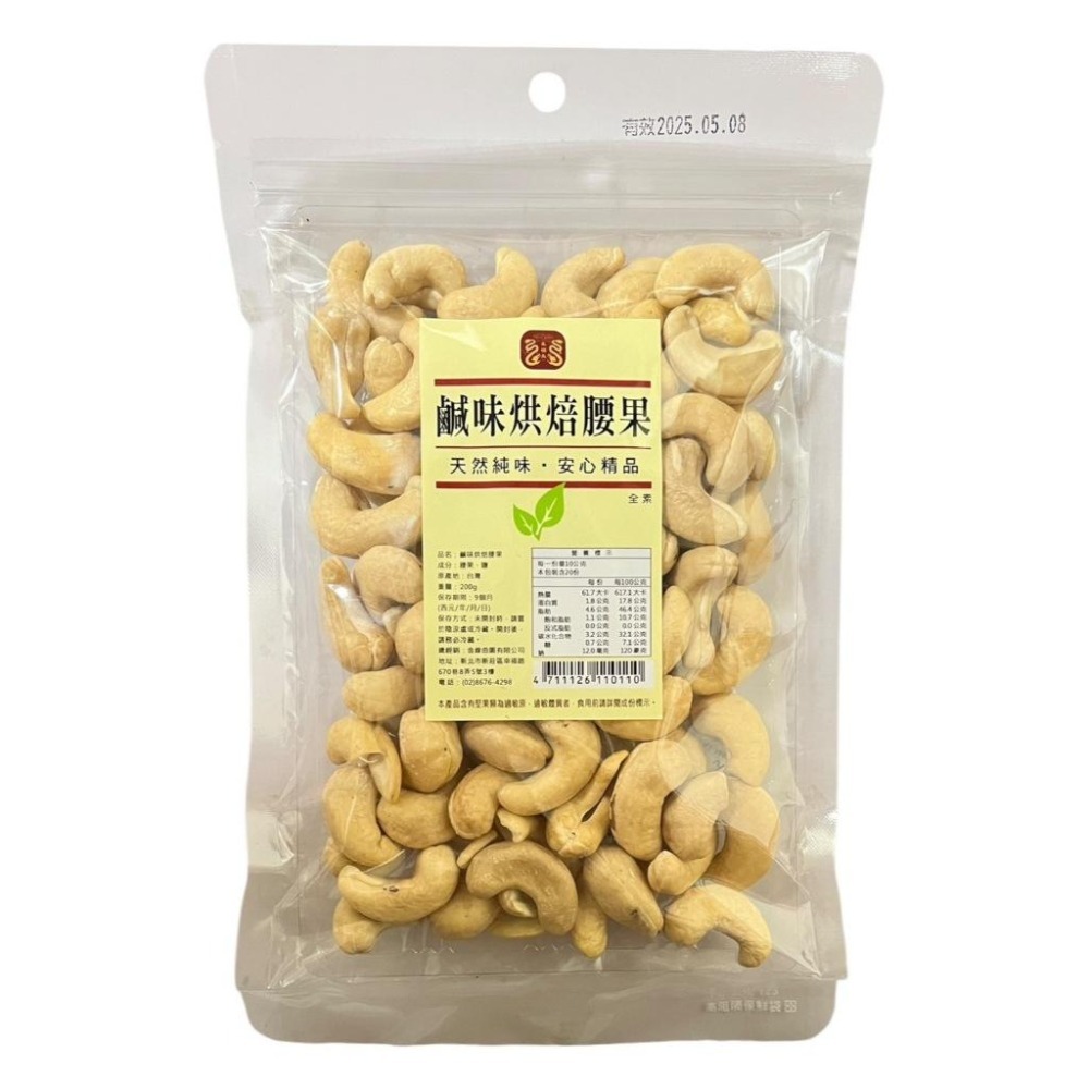 1.鹹味烘焙腰果 成分:腰果、鹽 商品規格:200g
