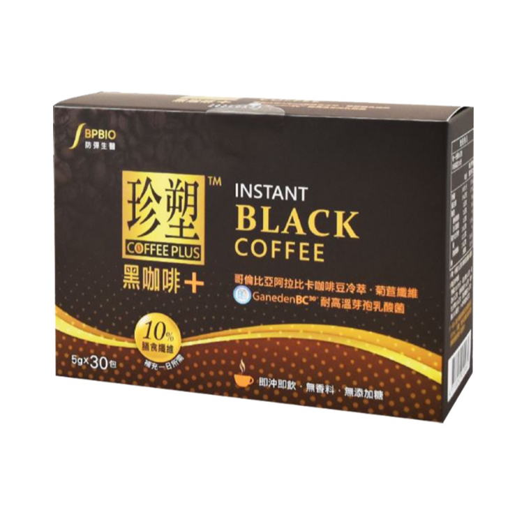 因應現代人健康需求,「珍塑黑咖啡+」特別添加荷蘭菊苣膳食纖維以及美國專利耐高溫芽孢乳酸菌,其水溶性膳食纖維可促進腸道蠕動及幫助消化,可共同調節生理機能、改變細菌叢生態以及促進健康。
