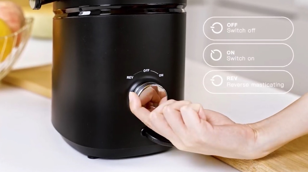 🟠【14.7公分雙面寬槽和自動切割動力】可容納整個蘋果和蔬菜無需預先切割並以60 RPM 運轉,升級的螺旋鑽以低速施加高壓,增加果汁產量。