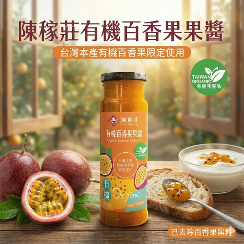 【陳稼莊】有機百香果果醬 300g/瓶 令人驚驗 無籽 百香果醬 如同新鮮現摘