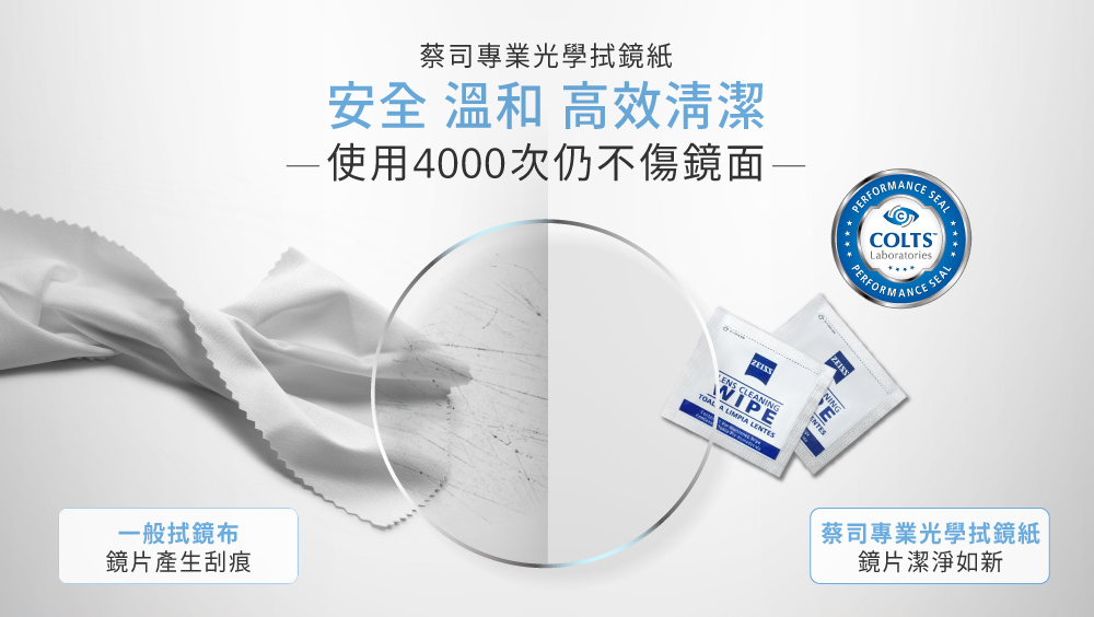 蔡司WIPES拭鏡紙具有清潔、除菌、安全、便攜等四大功能,可溫和清除鏡片上的污垢、灰塵或油脂,不傷鏡片膜層。