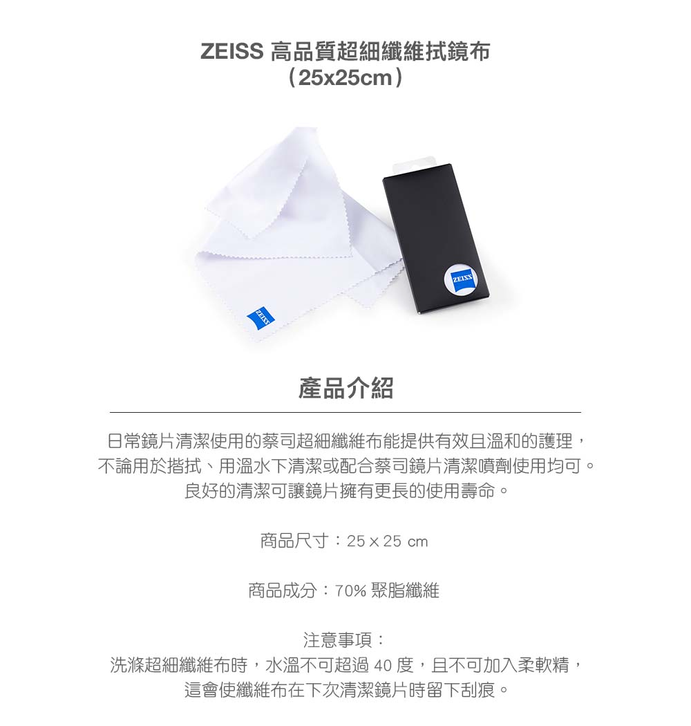 【ZEISS 蔡司】高品質超細纖維拭鏡布 25x25cm (眼鏡布 鏡頭擦拭 眼鏡擦拭)