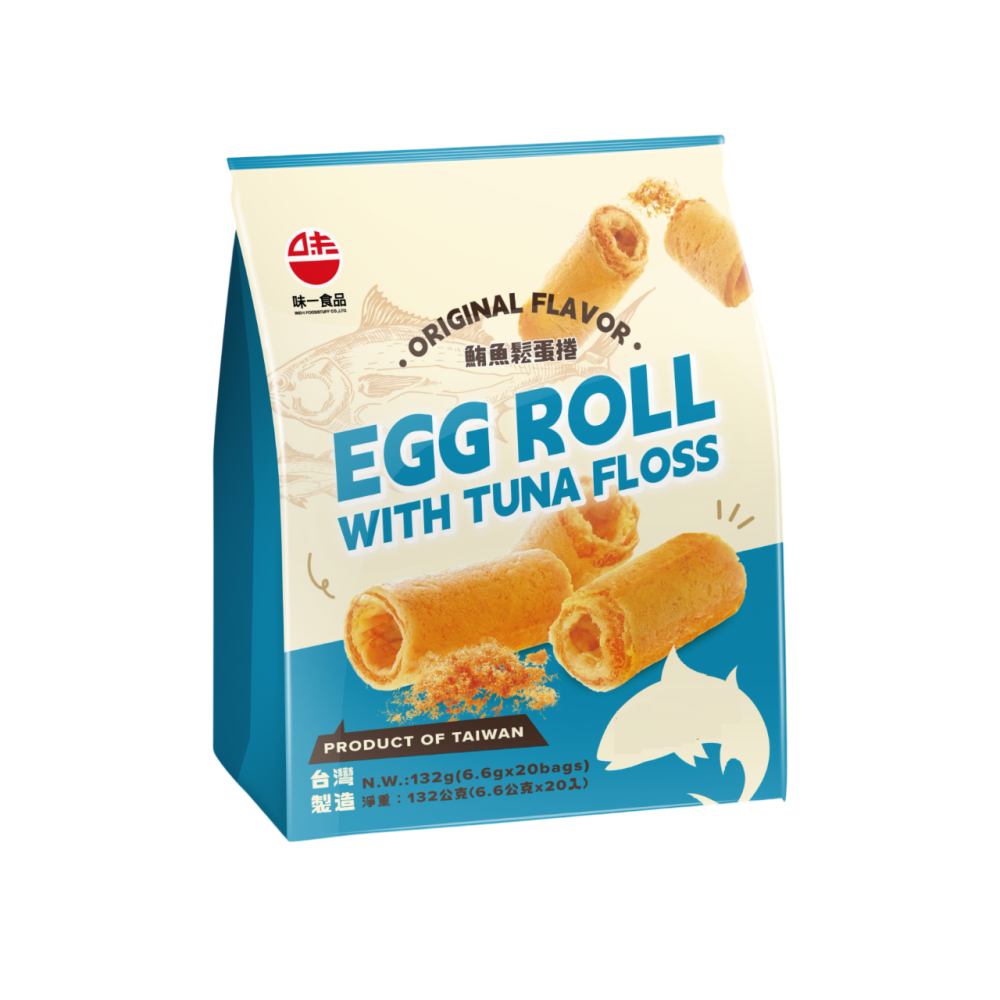 味一鮪魚鬆蛋捲,採用味一自家生產的鮪魚鬆,蛋液則是使用滅菌蛋液,不同於傳統蛋捲,味一將鮪魚鬆添加在餅皮之間,使得口味在蛋香與魚鬆香相互交流, 在口腔停留的戲份剛剛好的和諧,且尺寸如拇指般短巧,入口方便不會亂掉屑,堅持不添加人工色素、味精與防腐劑。