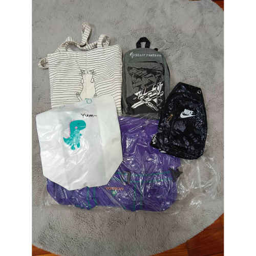 袋子:兩個小斜背包拉鍊斷掉,剩下都還很好,不介意難開拉,或可換拉鍊