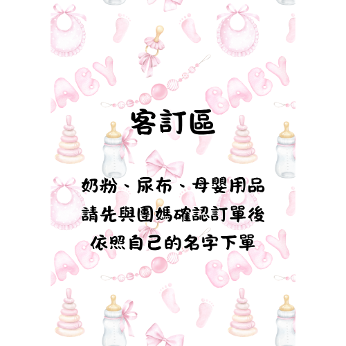 ⚠️奶粉尿布、童裝、母嬰用品等,請先與團媽確認訂單後,依照自己的名字下單