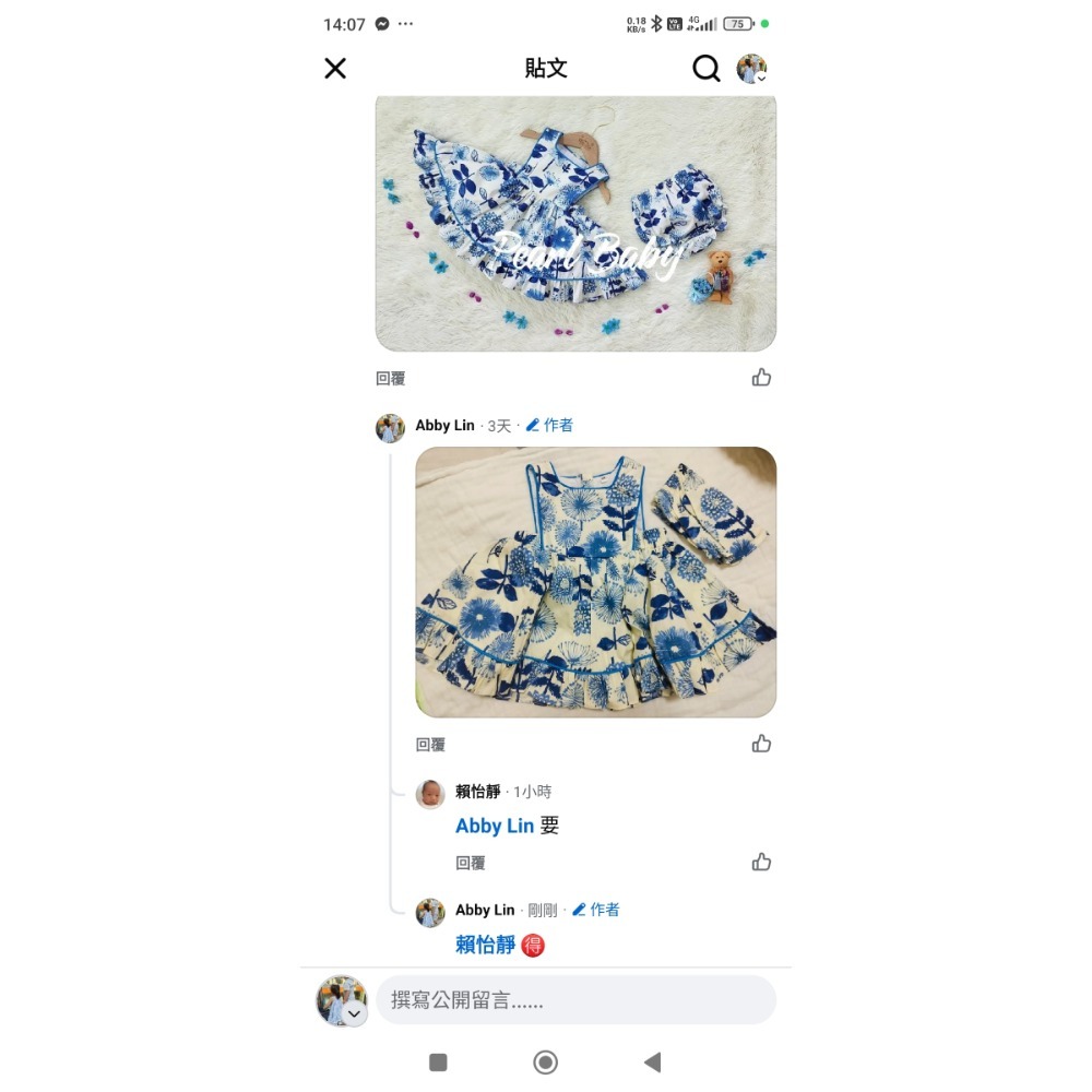 珍珠貝比 奶油底蒲公英方領套裝24M全新+GL藍雛菊方領套裝