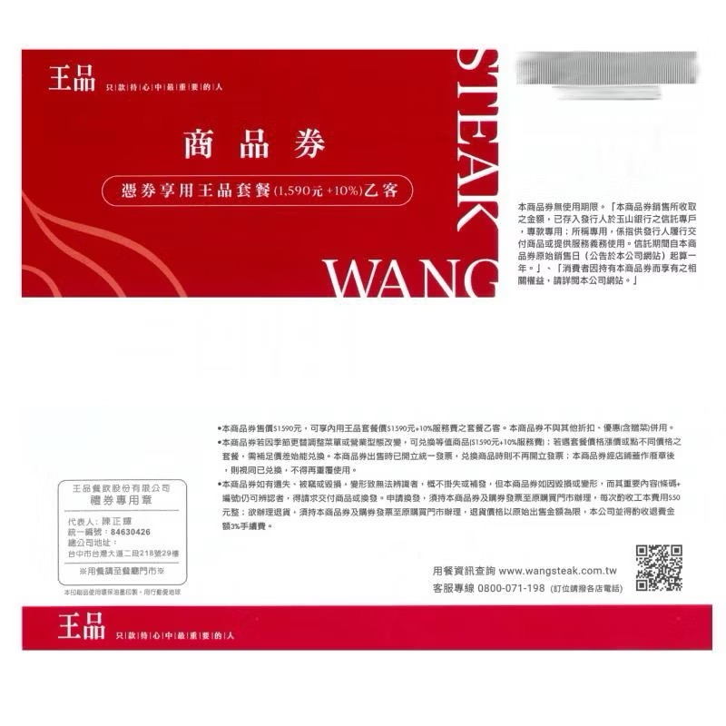 王品集團 王品牛排商品券