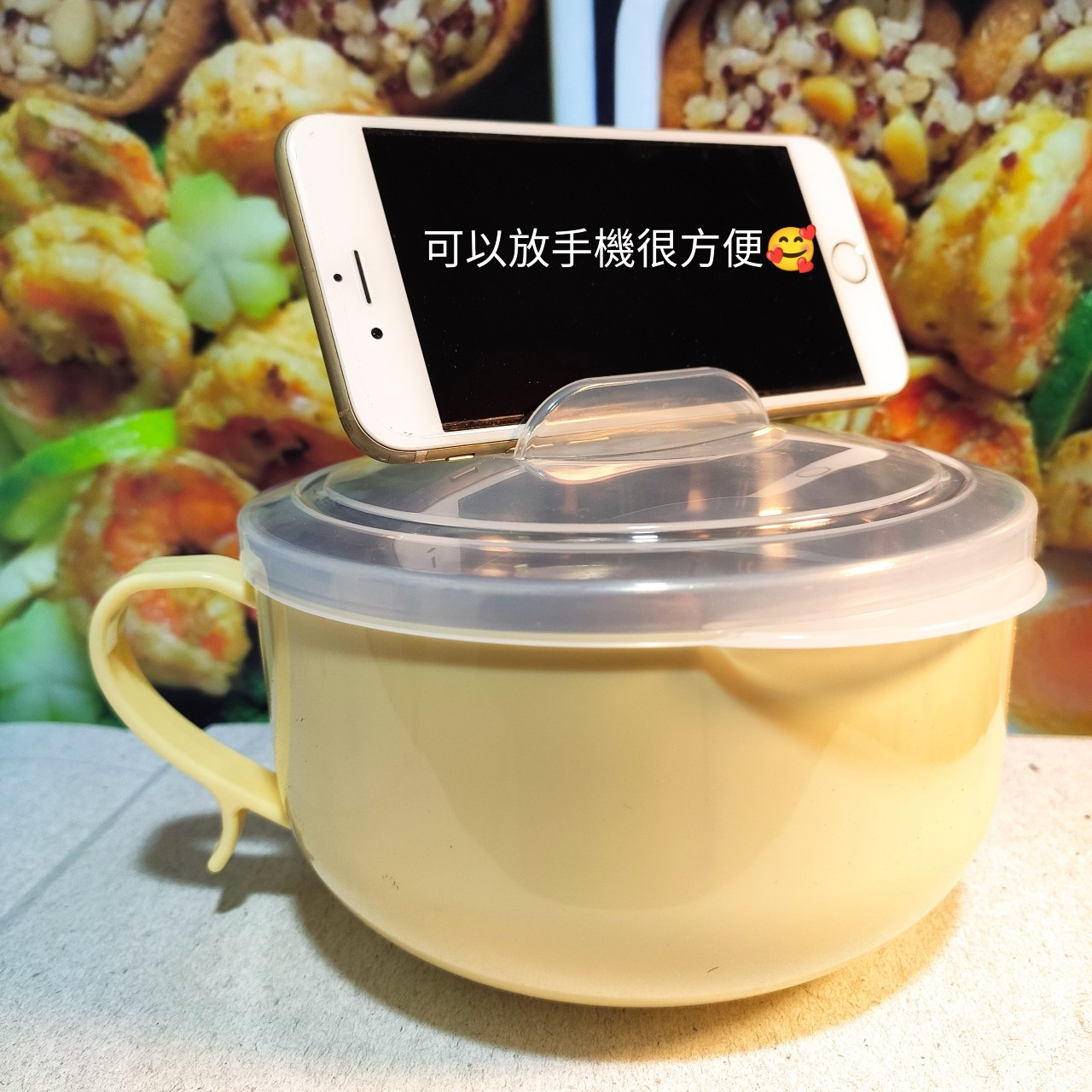 特色: 雙層隔熱防燙、上蓋可當手機支架、透明上蓋可暫放餐具、附手把