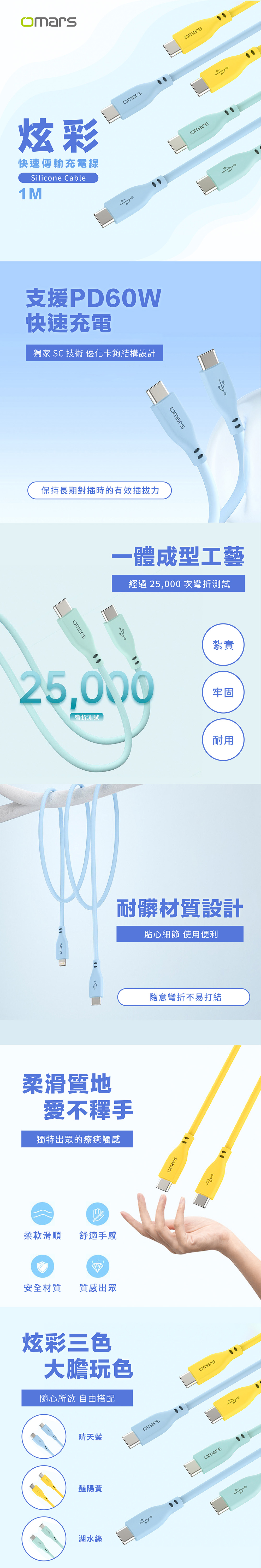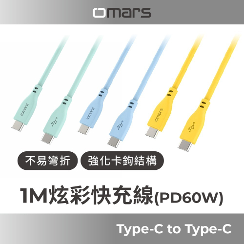 品名:【omars】USB-C to USB-C 炫彩快速傳輸充電線1m (PD60w)