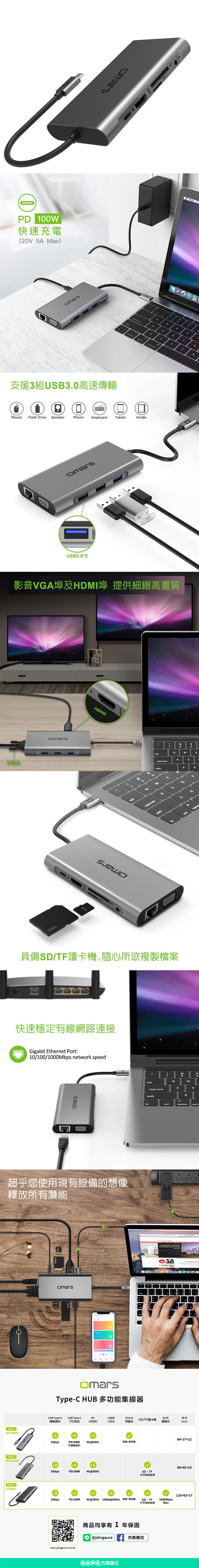 品名:【omars】10in1 Type-C HUB 十合一多功能鋁合金集線器