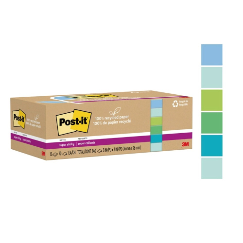 3M✨利貼狠黏 3x3便條紙(70張x12本)藍綠色系