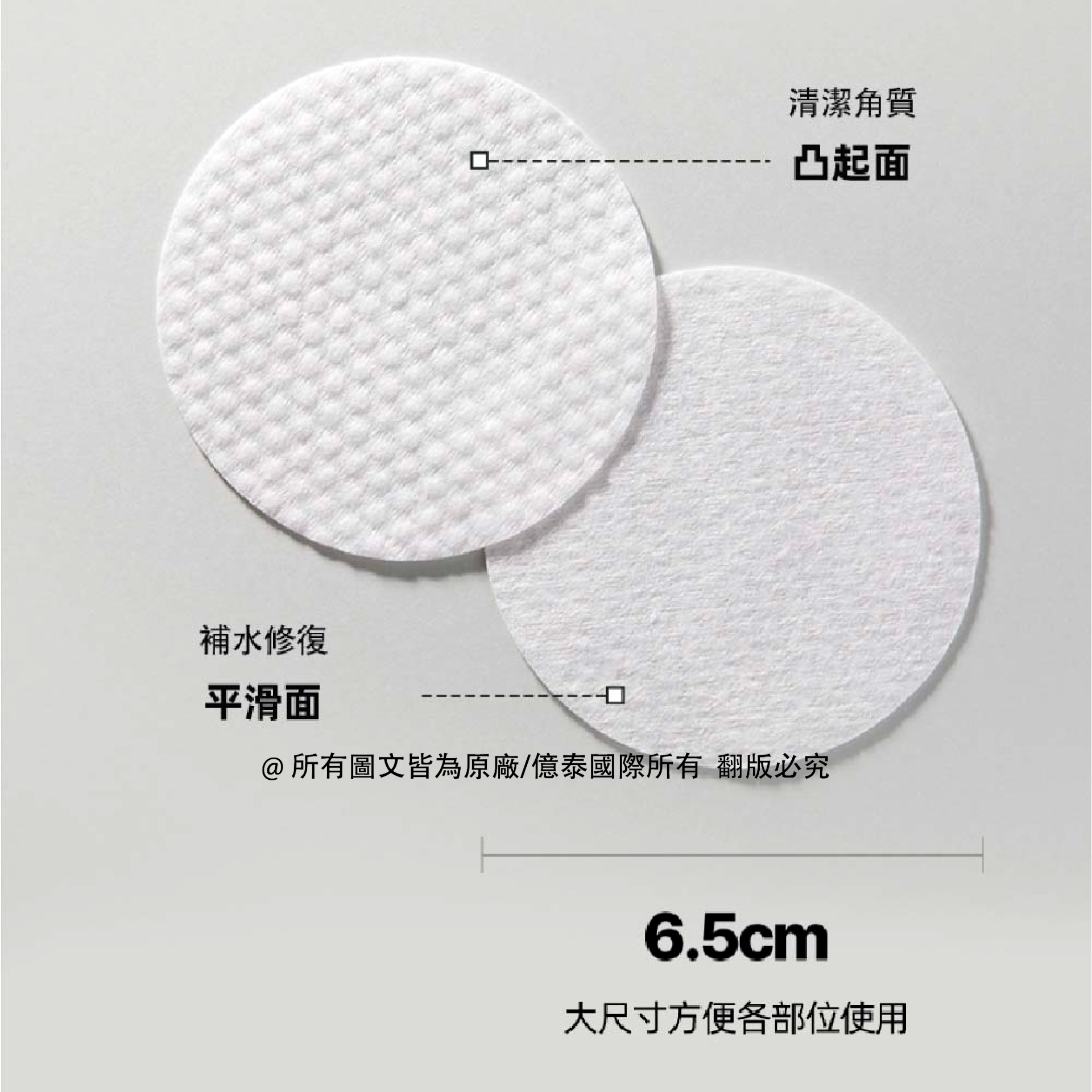 ✅ 一片搞定雙重功效 壓花面:去角質、控油清潔 柔滑面:濕敷補水、瞬間鎮定