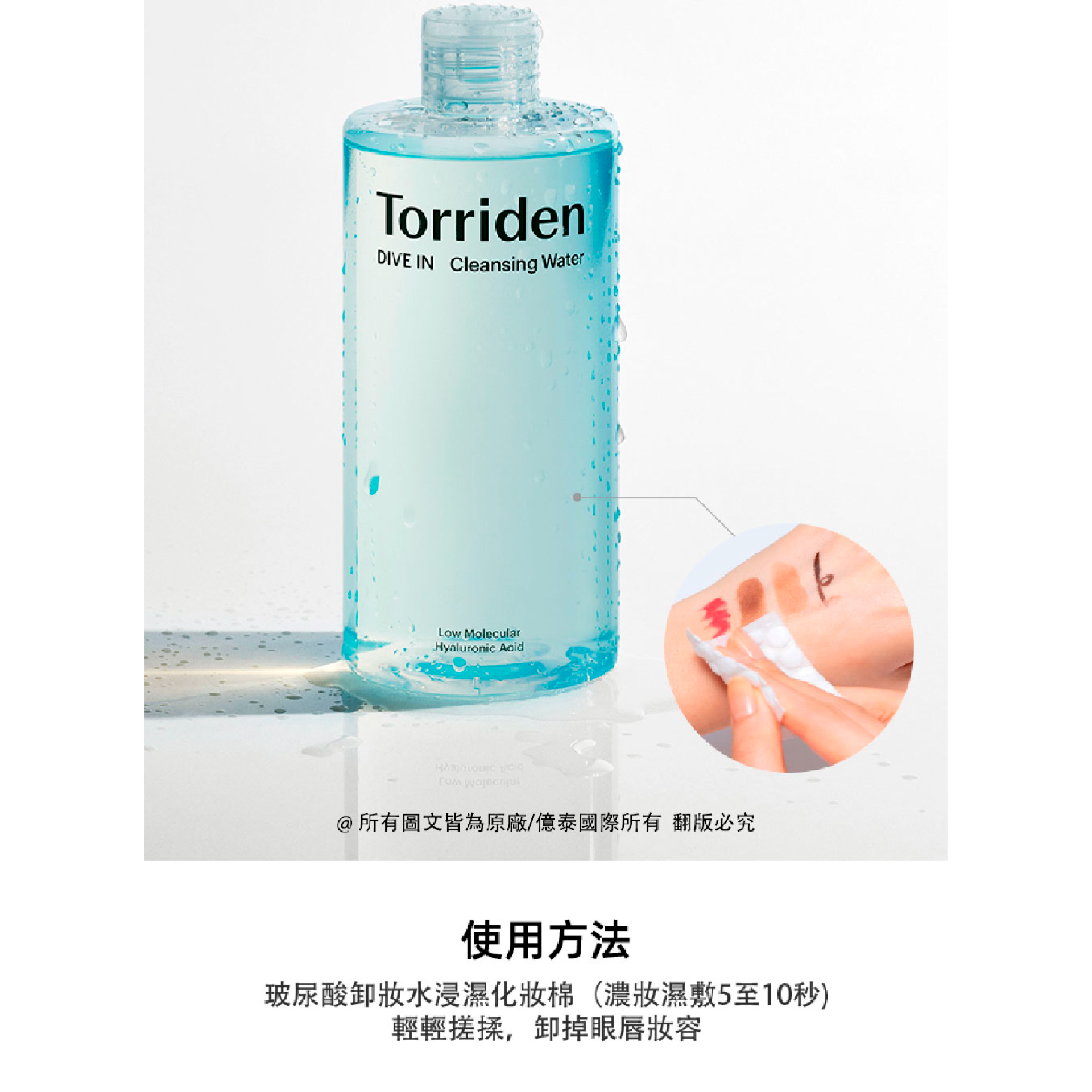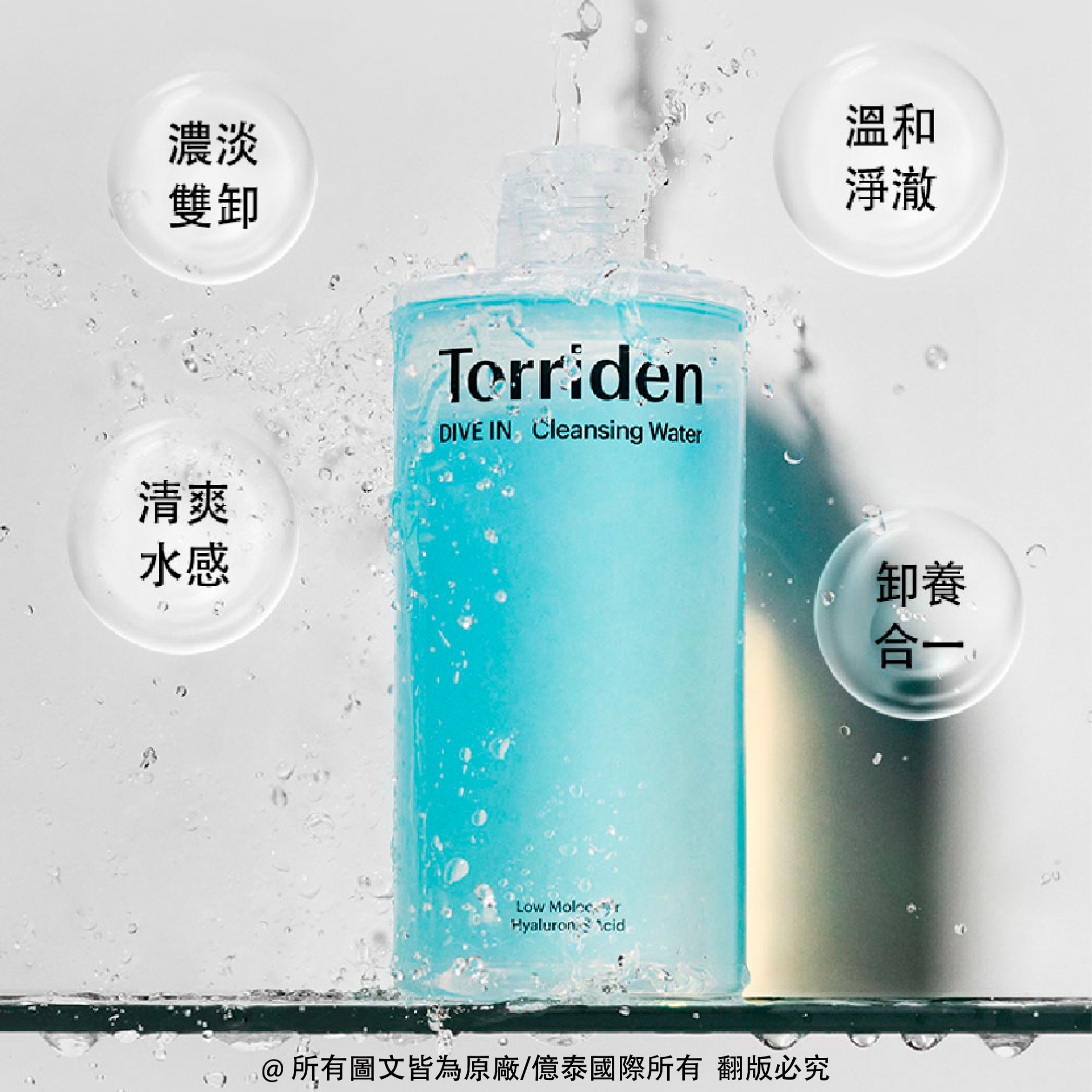 #Torriden #桃瑞丹 #玻尿酸卸妝水 #DIVEIN潔膚 #溫和卸妝 #保濕不刺激 #敏弱肌友善 #韓系保養 #OliveYoung熱銷 #CleanBeauty #8D微分子 #無油無酒精