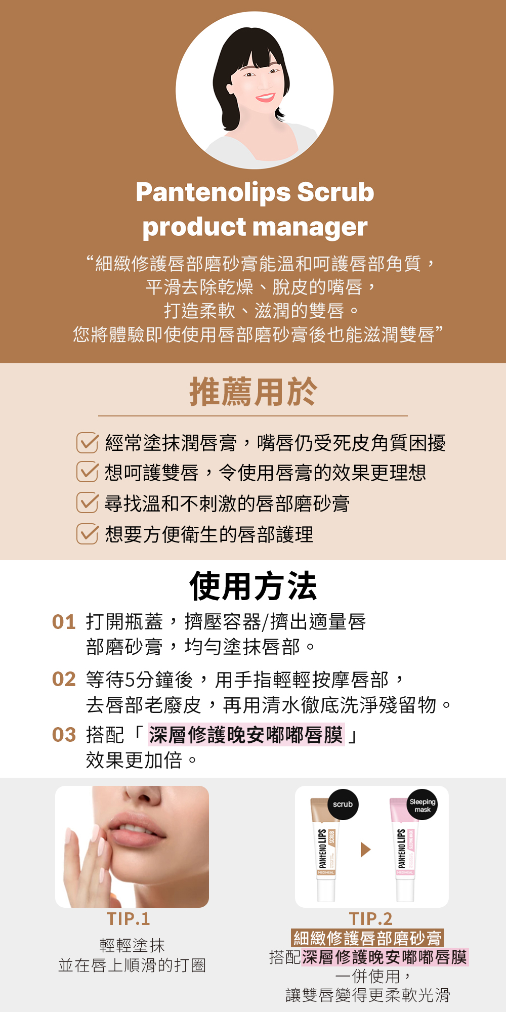 3. 搭配「細緻修護唇部磨砂膏 」,可以呵護雙唇更光滑、滋潤,效果更加倍