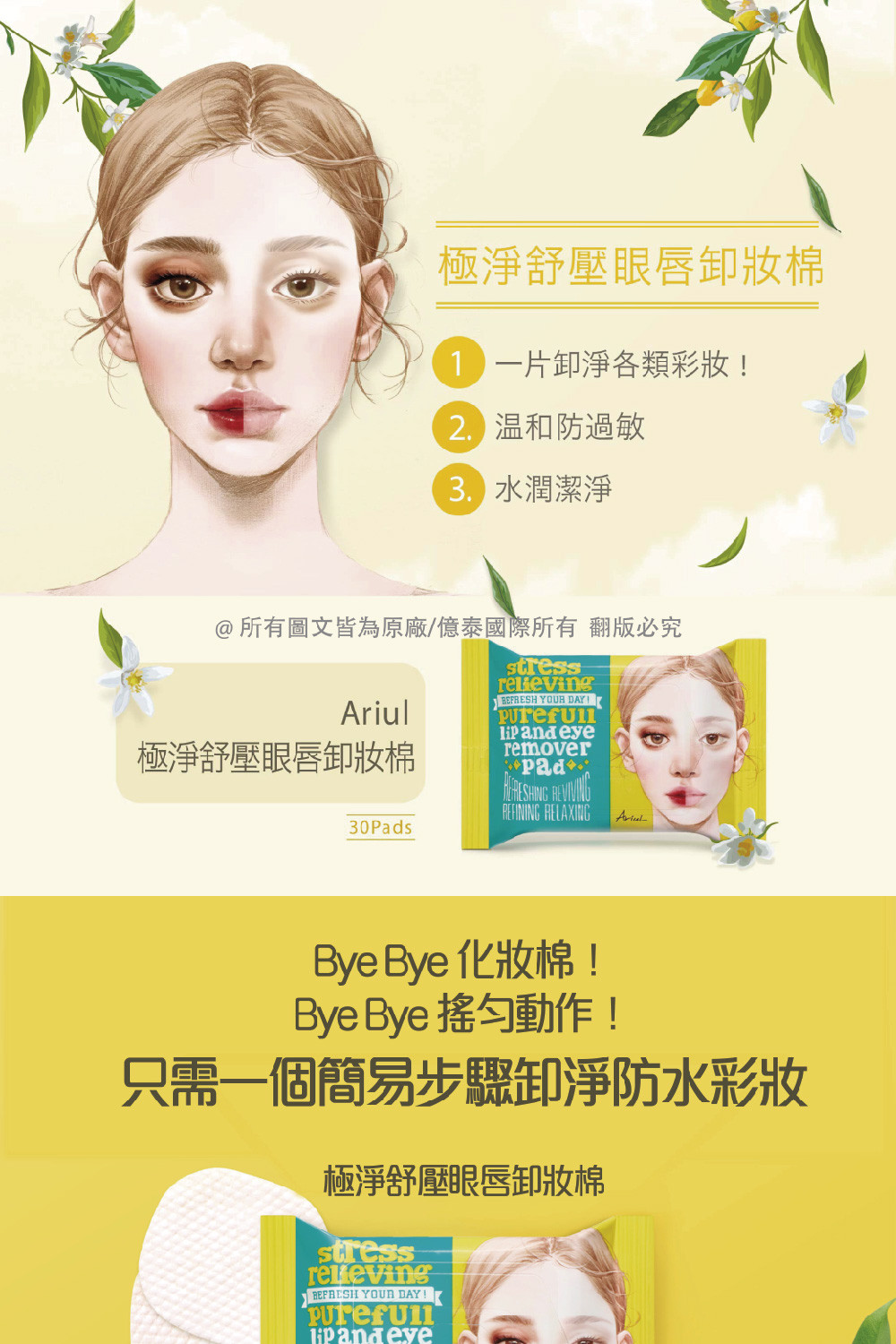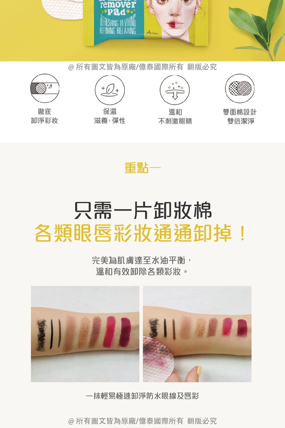 商品名稱 : 【Ariul】艾藜兒 淨膚雙面眼唇卸妝棉 (30片)