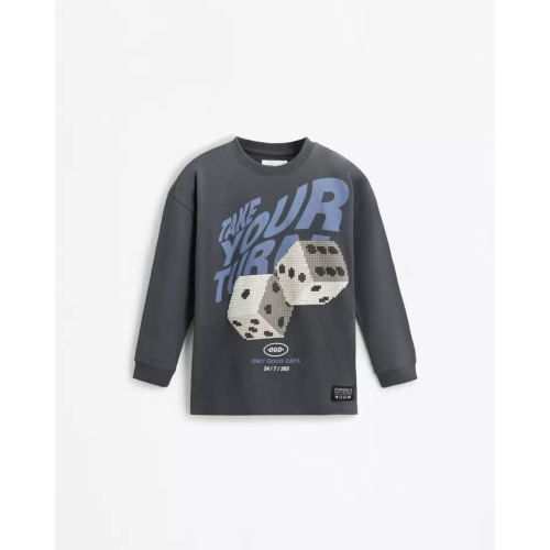 圓領長袖T-shirt。正面印有各種像素化圖案,背面有文字。 100%純棉材質。