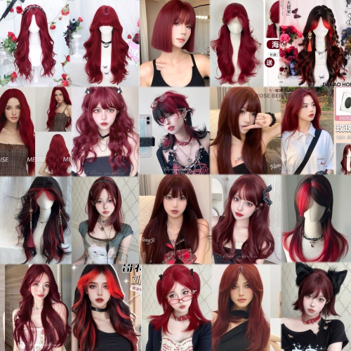 【現貨1】紅色 酒紅色 玫瑰紅色 紅黑色 赤紅色 勃艮第紅 亮紅系列假髮♥️捲髮 直髮 短髮酒紅色假髮紅皇后假髮赤髮假髮