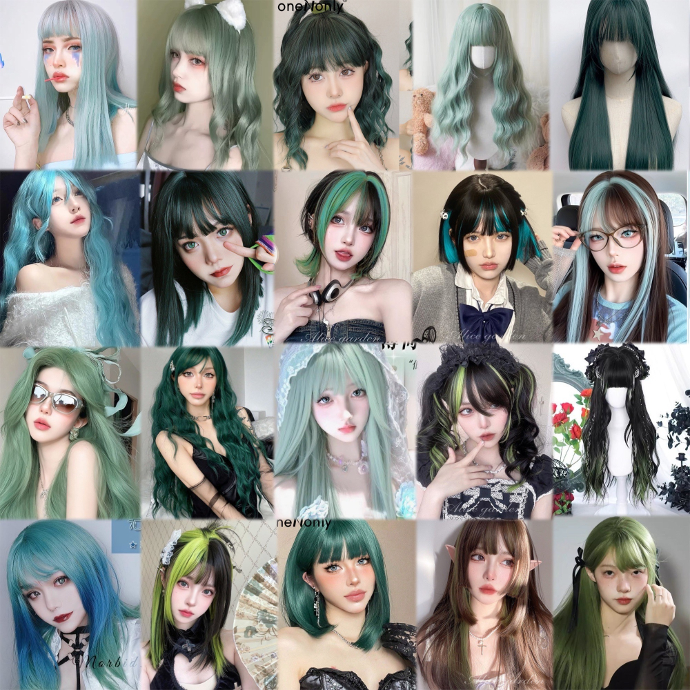 【現貨1】薄荷湖水 綠草綠 墨綠色 翠綠 森林綠 翡翠綠 綠色系列假髮💚捲髮假髮 直髮 短髮 前額蕾絲挑染假髮碧綠色