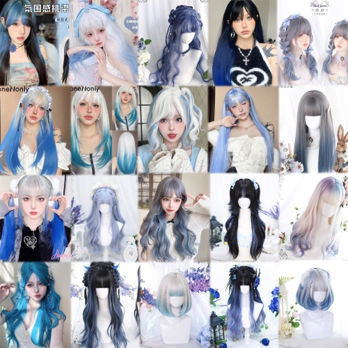 【現貨1】天藍色 寶藍色 銀河藍 灰藍色 黑藍色 藍白 水藍色系列假髮💙藍色假髮 捲髮假髮 直髮短髮長髮天使假髮天空藍