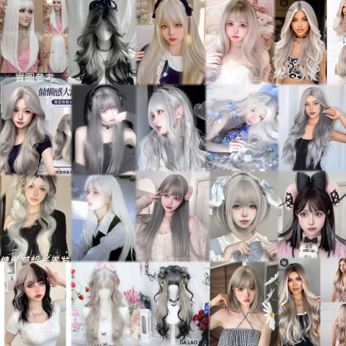 【現貨1】銀色 白色 灰色黑白漸變色 灰黑色 灰白色 純白色 銀白色系列假髮🤍白挑染日常假髮 奶奶假髮漸層假髮黑白假髮