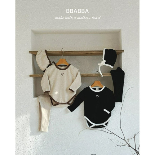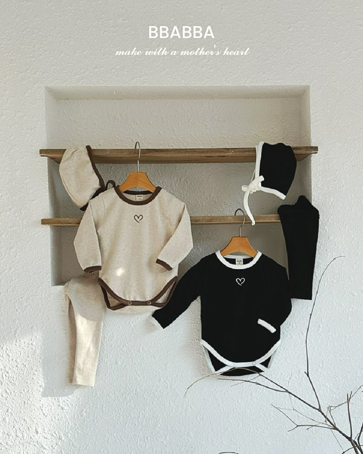 BBABBA 套裝 (帽/包屁依/內搭褲) 빠빠 하트자수3종SET(피치기모)