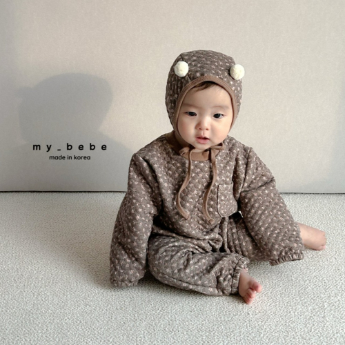 Mybebe 套裝 包屁衣 含帽 마이베베 누빔바디슈트세트(방울보넷세트)