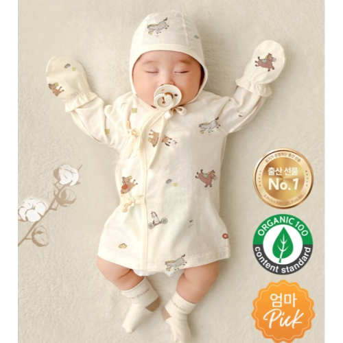韓國製 IKIY 이키 馬年新生兒紗布衣