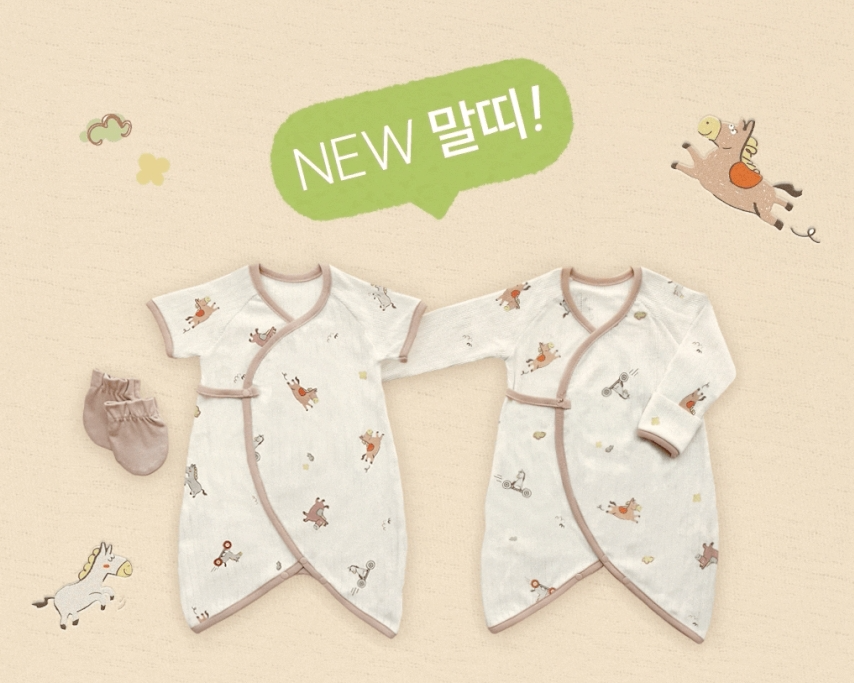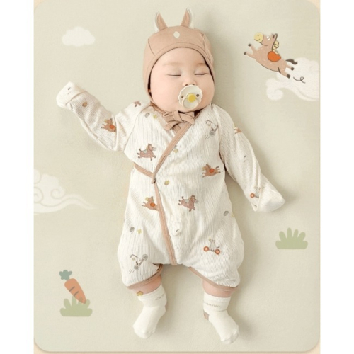 韓國製 IKIY 이키 馬年新生兒紗布衣 含帽