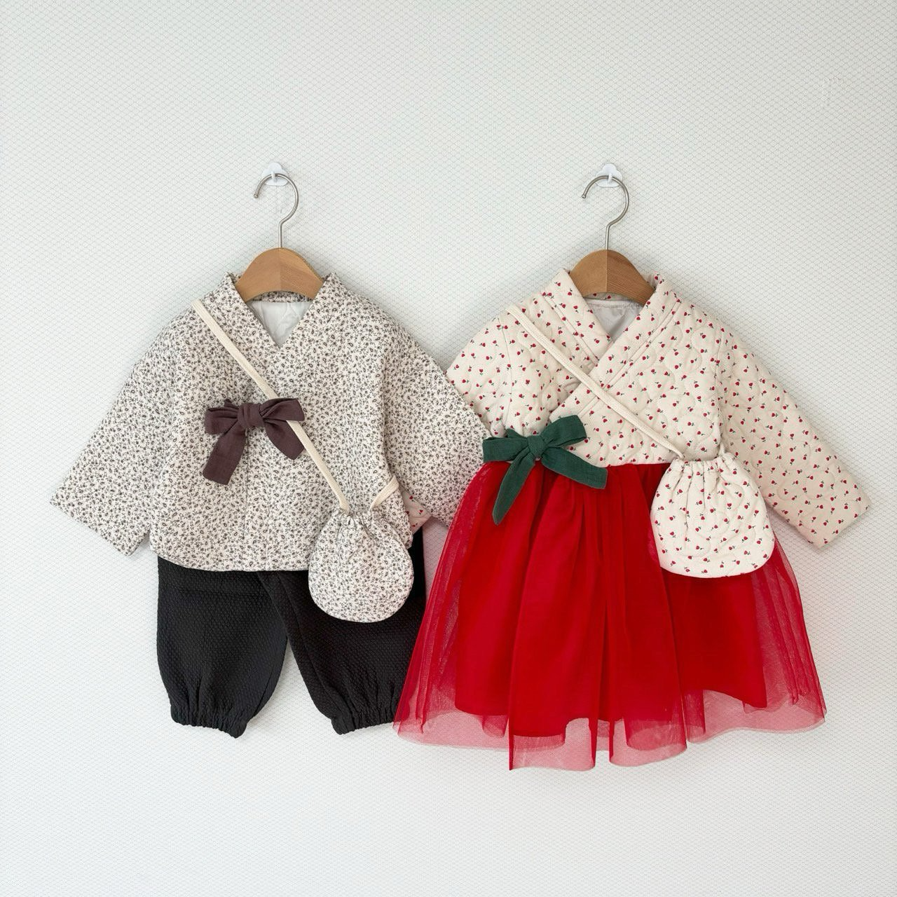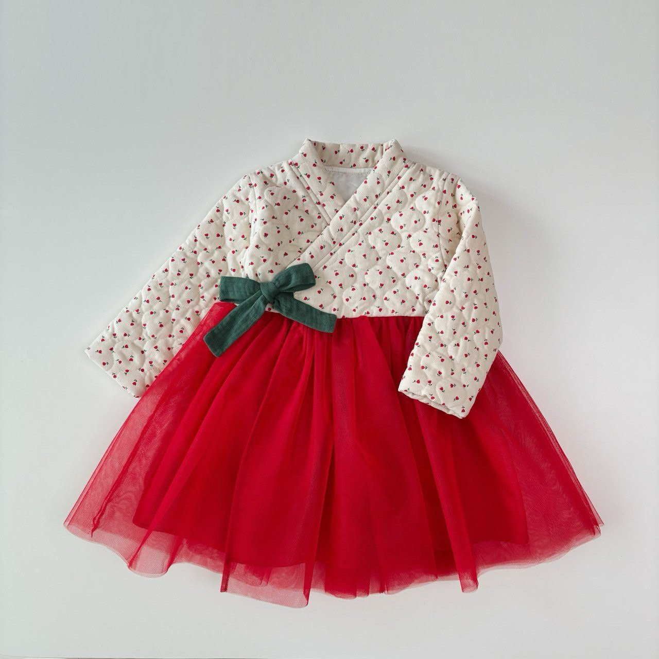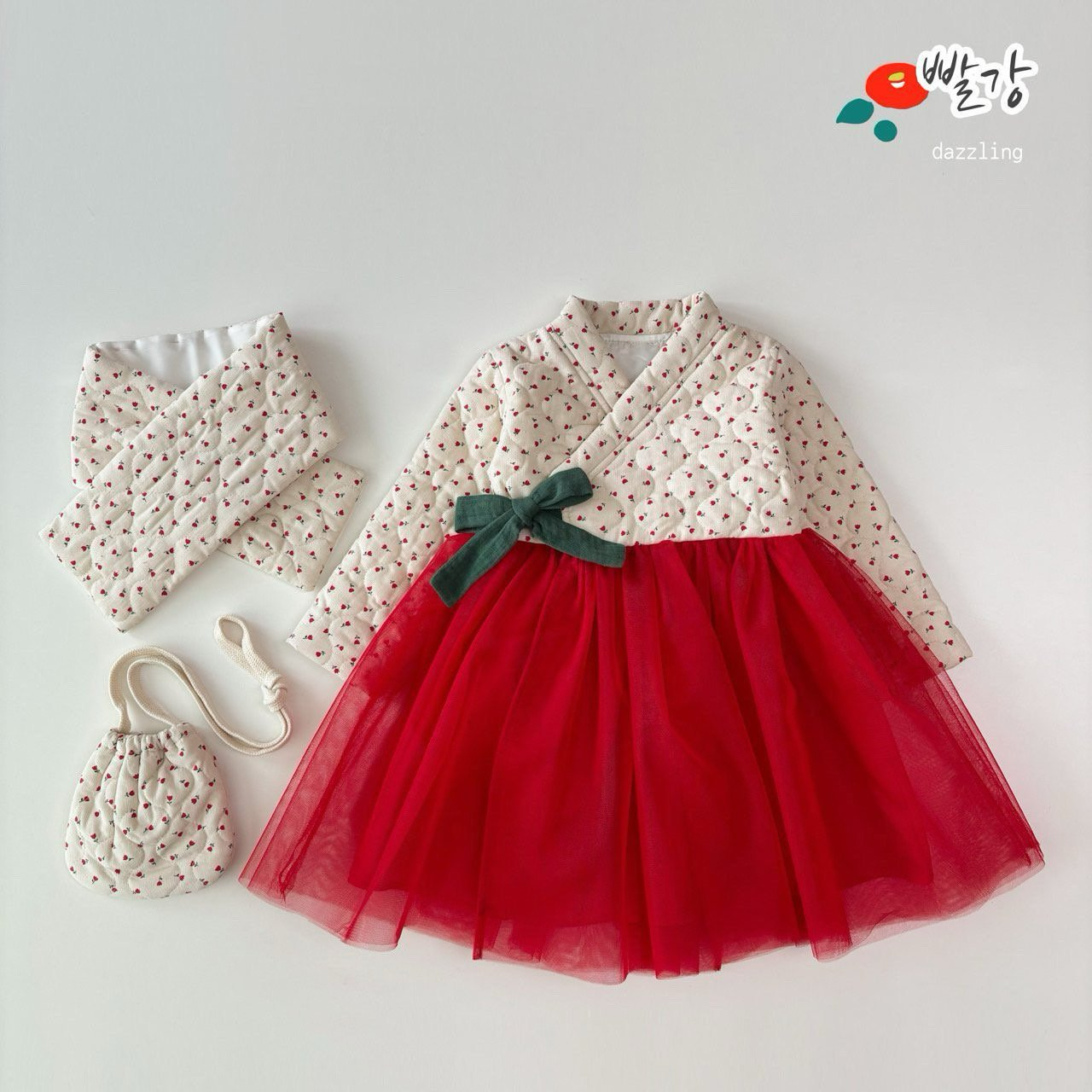 韓國製 Dazzling 新年韓服洋裝套組 拜年喜氣山茶花韓服 過年新衣 (韓服+圍巾+包包)