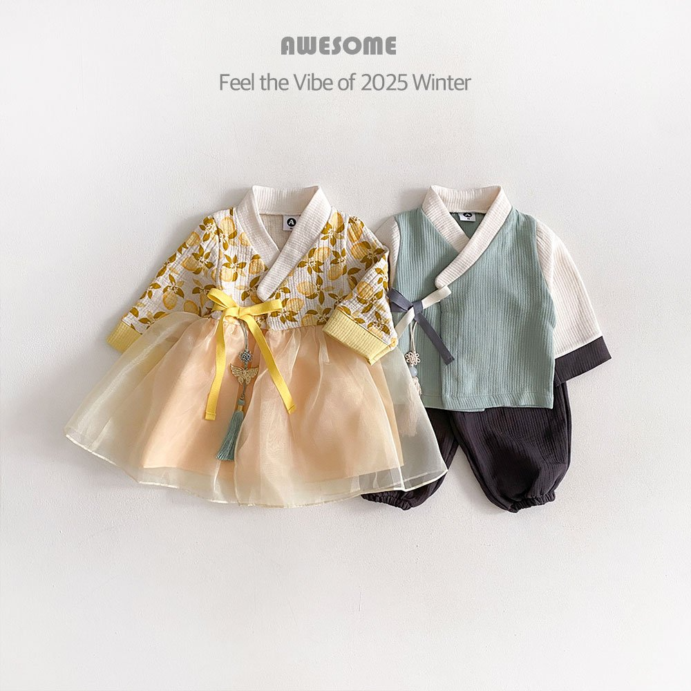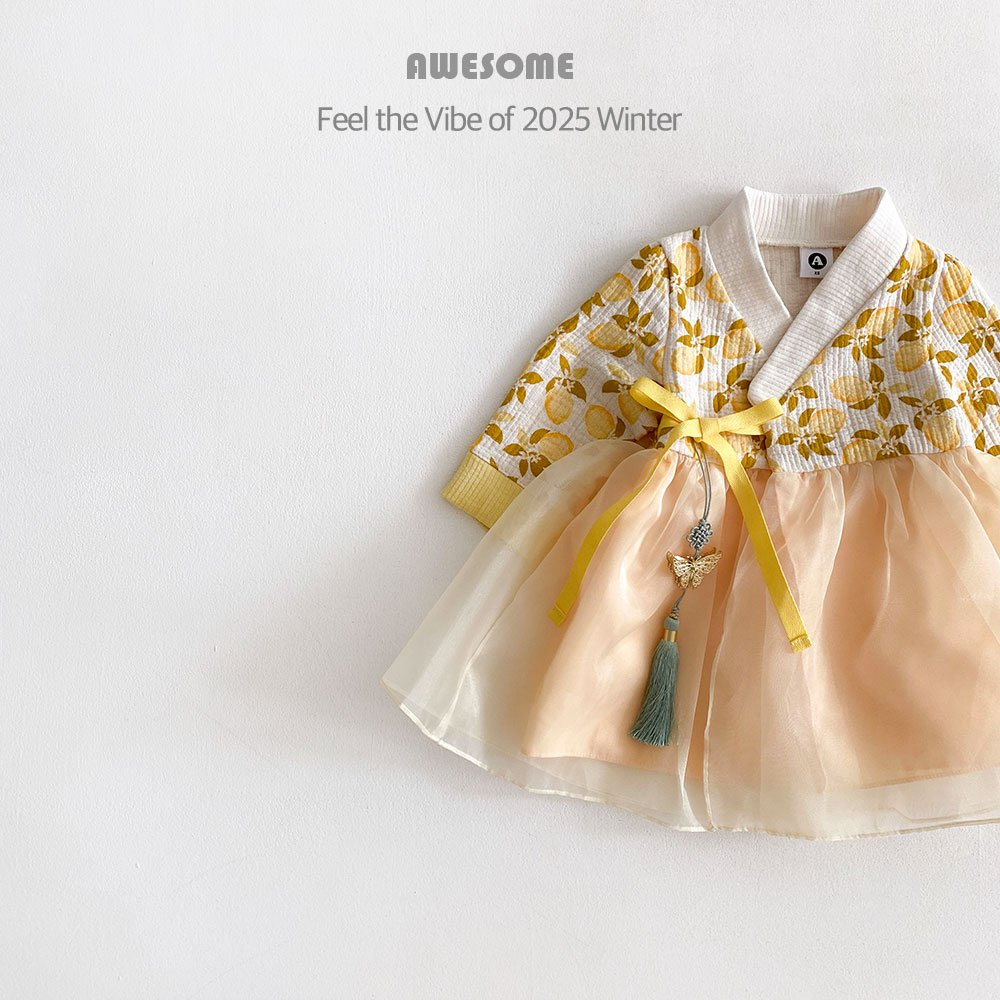 韓國 新春木瓜花果韓服 어썸베베 노란모과여아한복