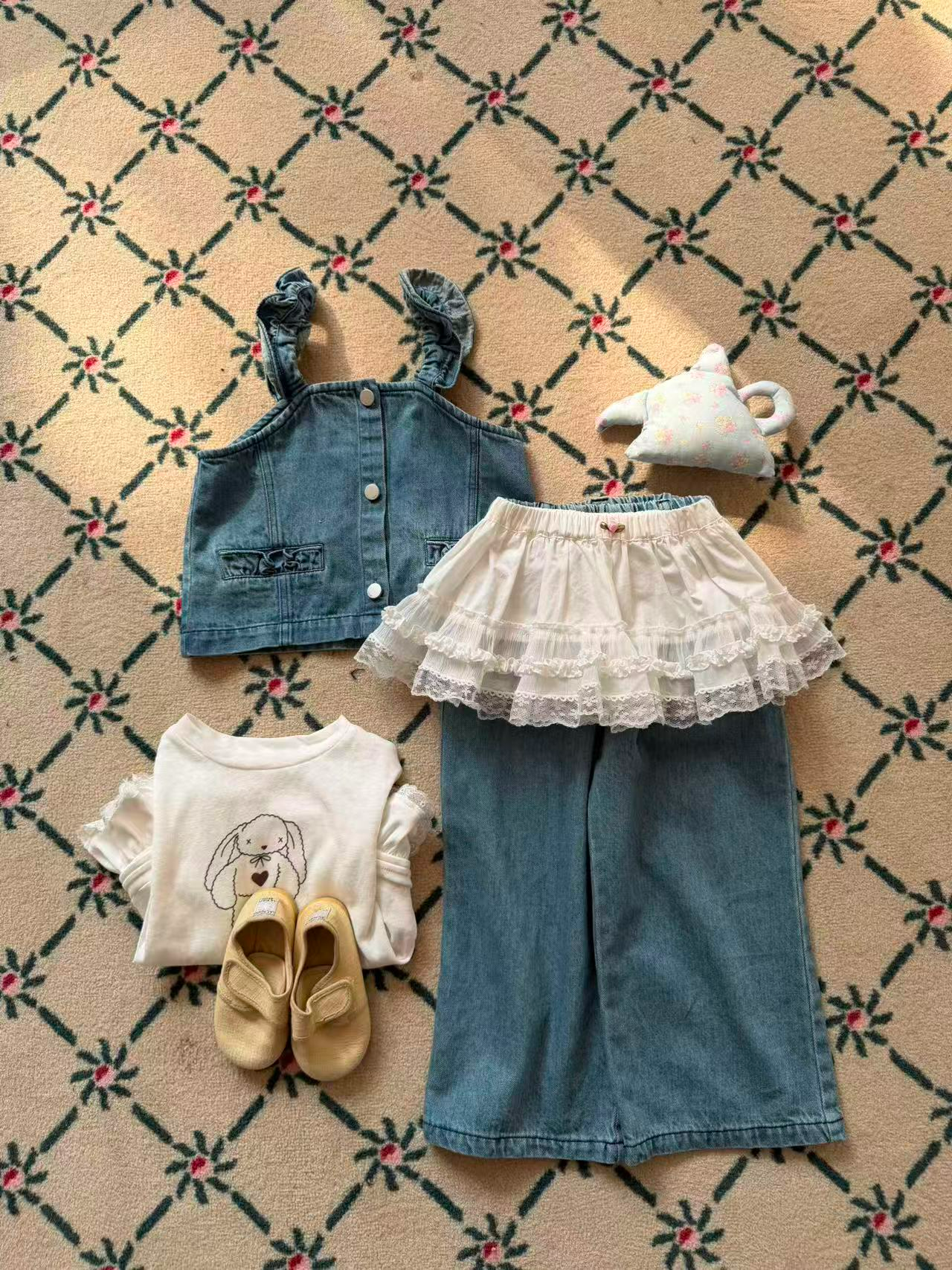 Aiai 上下 套裝 아이아이 봄)와이드프릴데님상하세트