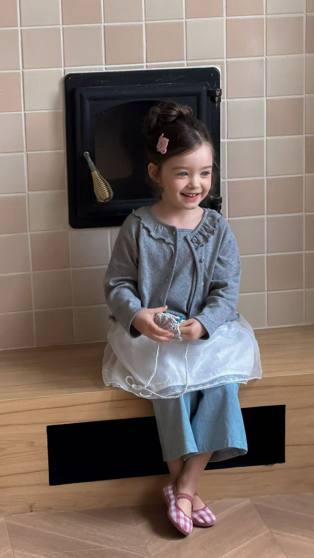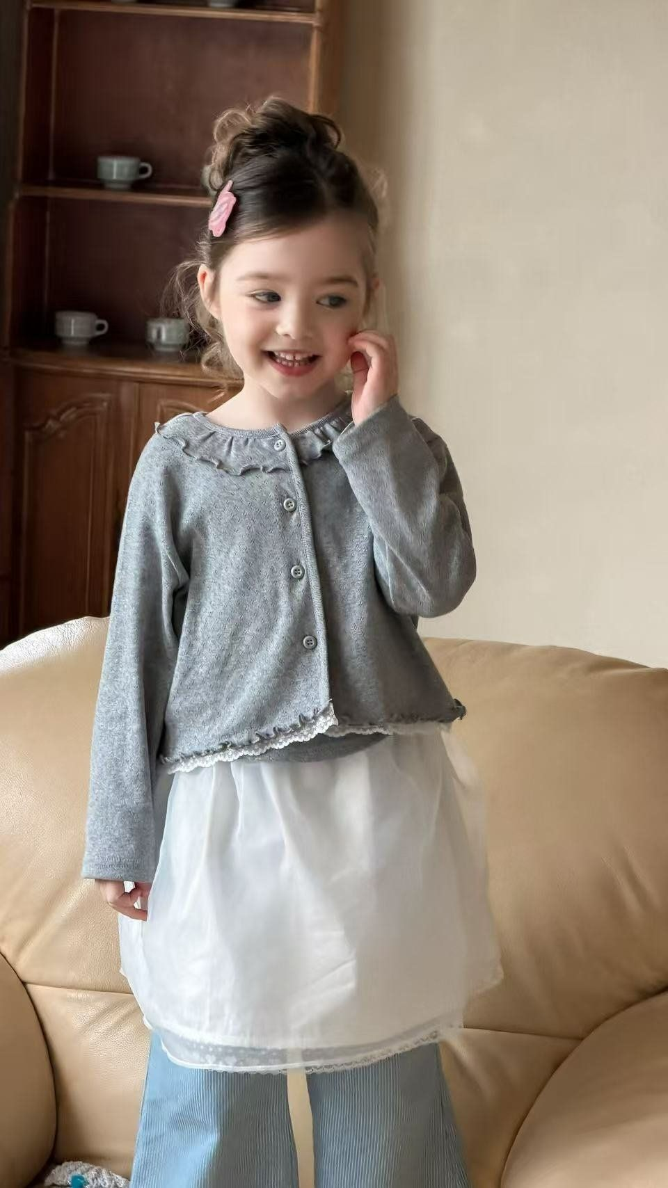 Aiai 開襟衫 아이아이 봄)포니프릴코튼가디건나시세트
