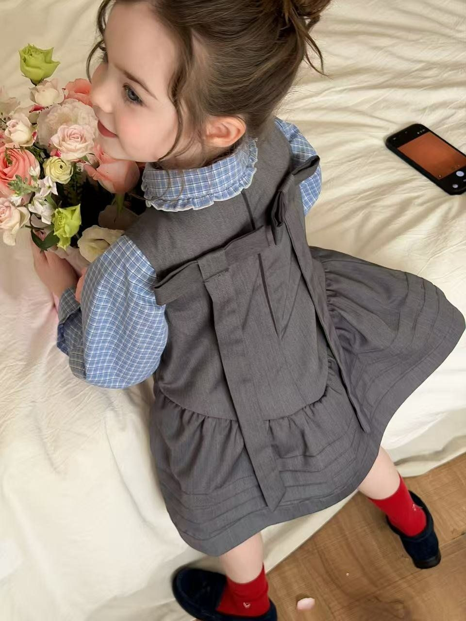 Aiai 上衣 아이아이 봄)블루밍체크블라우스