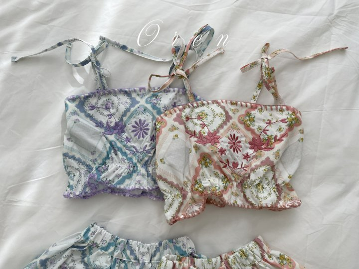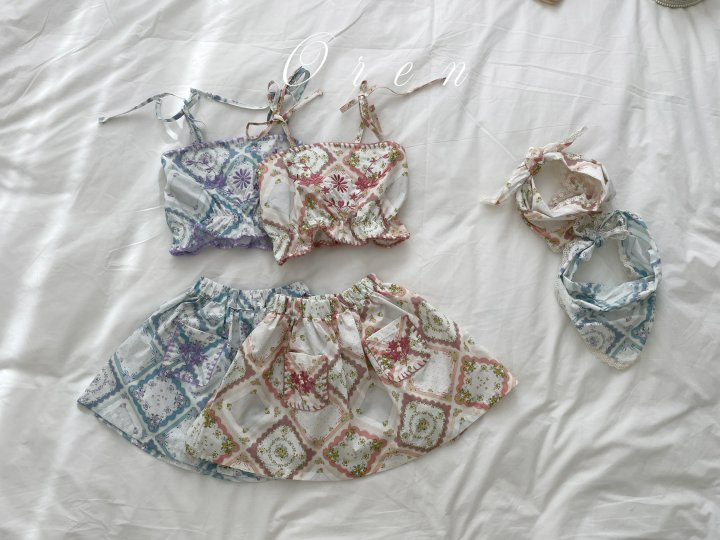 Oren 套裝 裙子+背心+髮飾 오렌 루시엔가든세트키즈(두건+뷔스띠에+스커트)