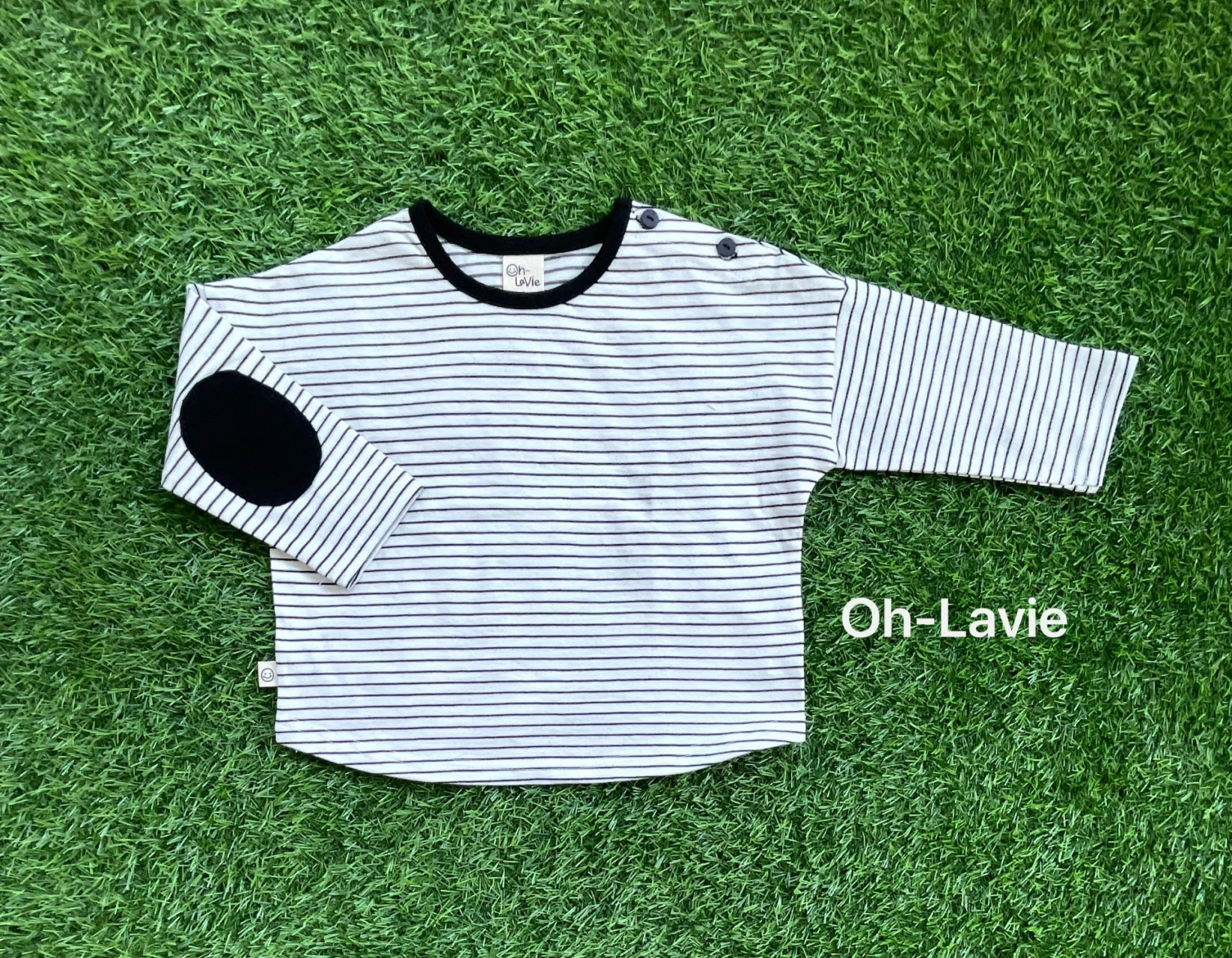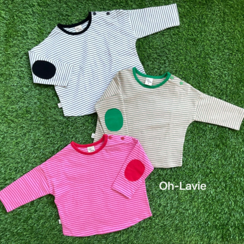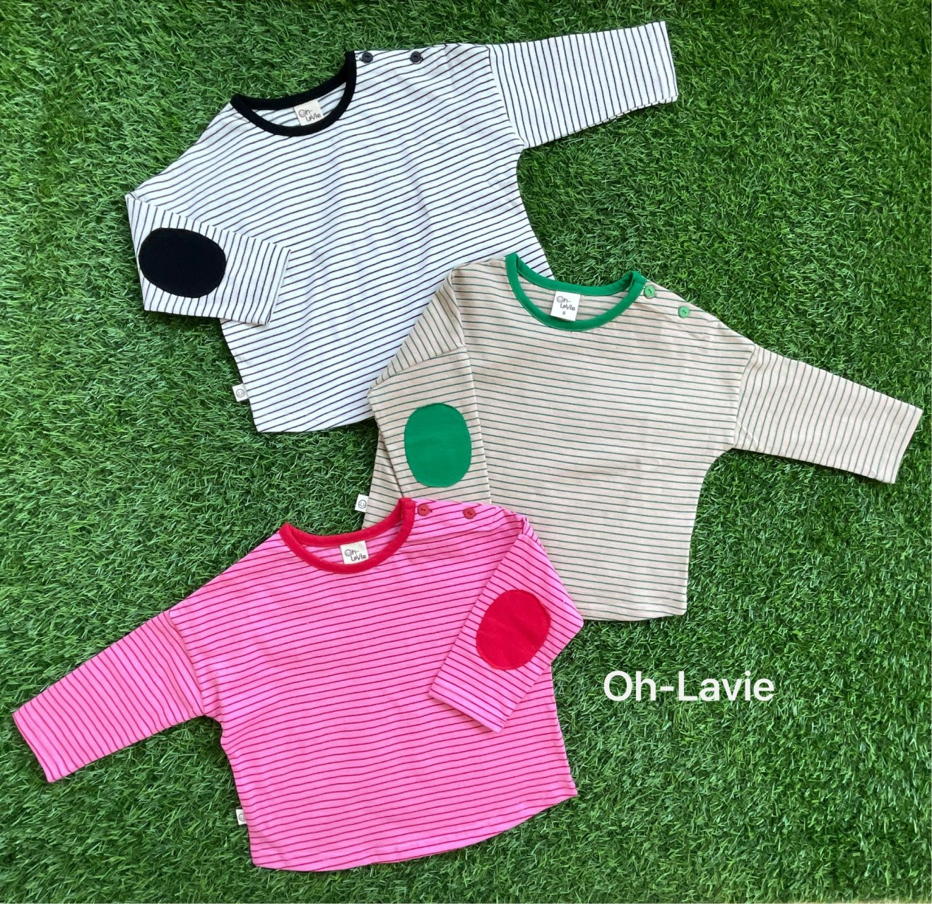 Ohlavie 上衣 오라비 빵떡스트라이프배색티셔츠