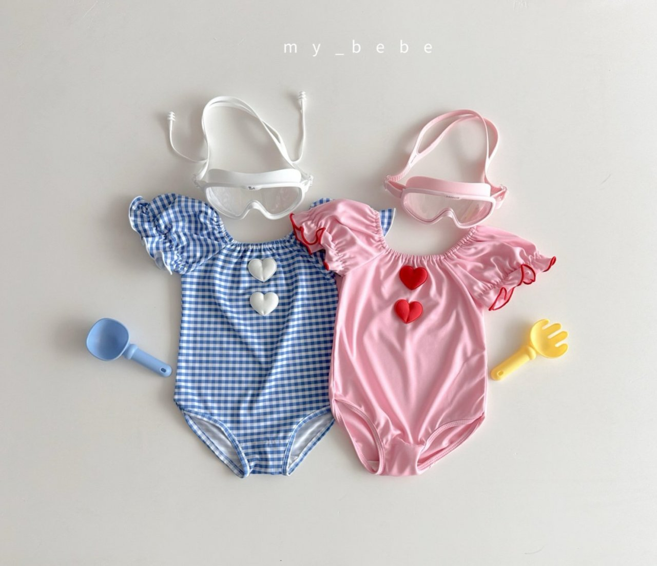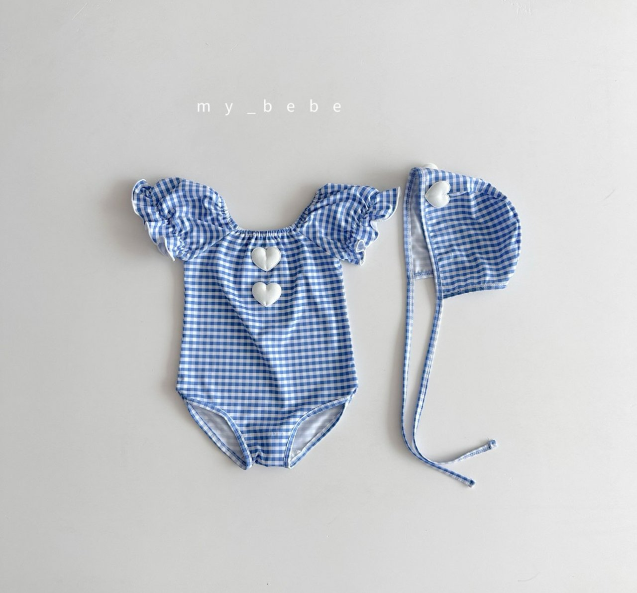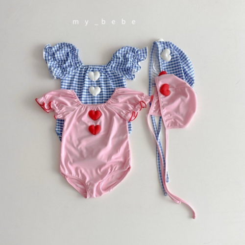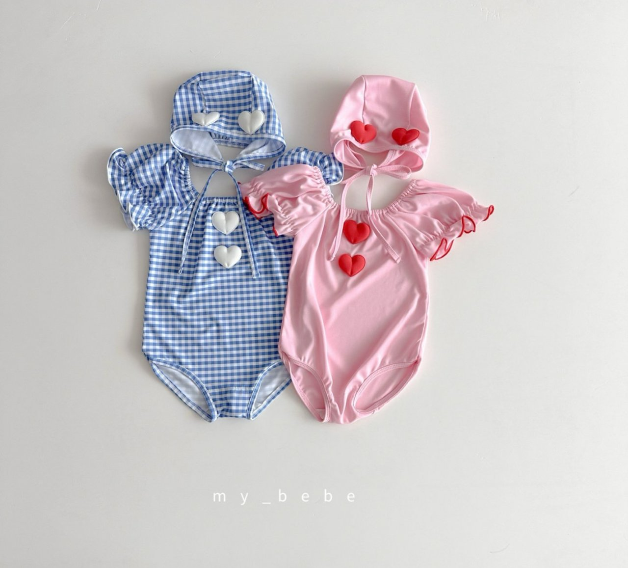 Mybebe 套裝 泳衣+泳帽 마이베베 하트모티브셔링수영복(수영복+모자SET)