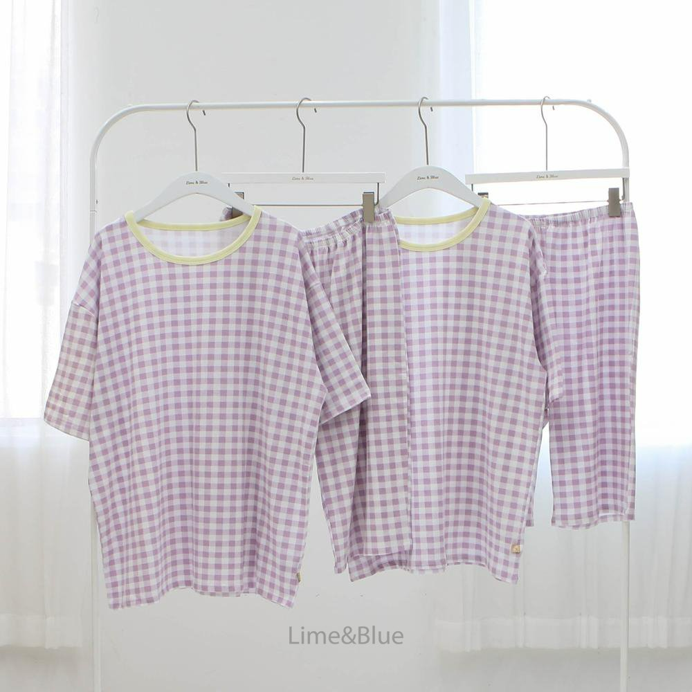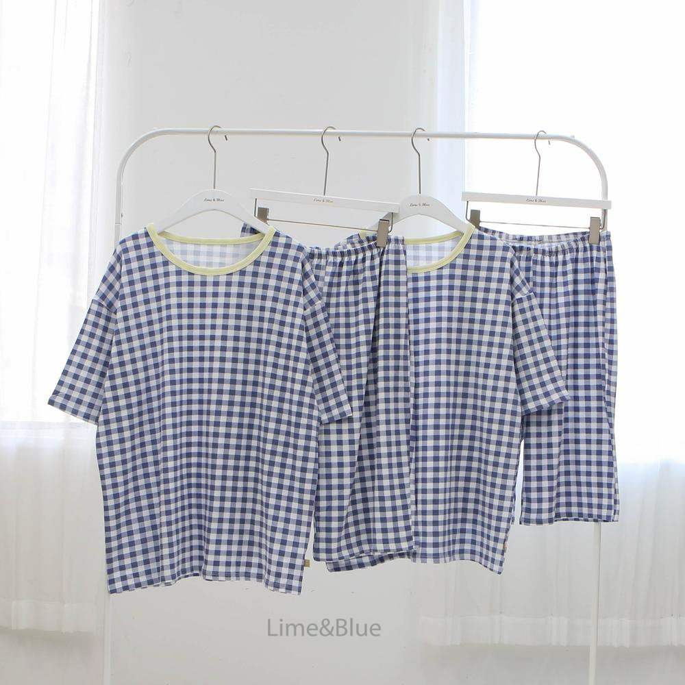Lime&Blue 套裝 上下 (成人) 라인앤블루 썸머크래커체크반팔상하세트(성인)