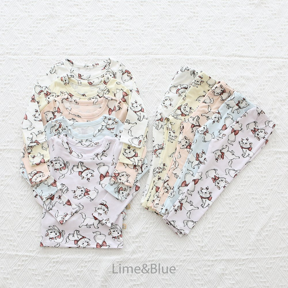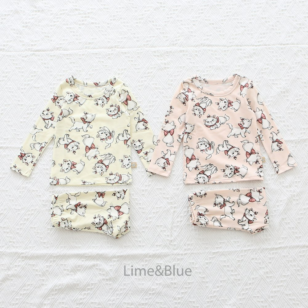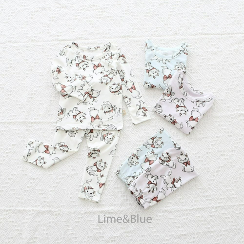 Lime&Blue 套裝 上下 라인앤블루 리본고양이슬림핏실내복