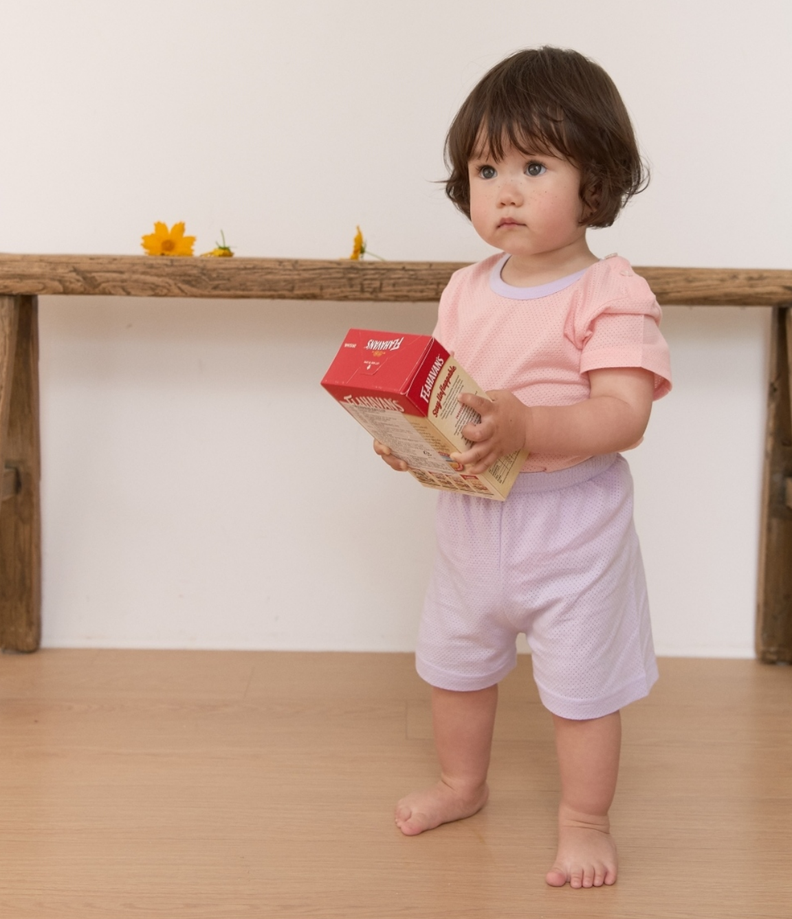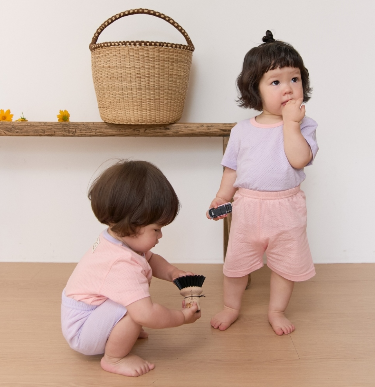 韓國製 馬卡龍夏季室內服套裝 (網眼) 短袖+短褲