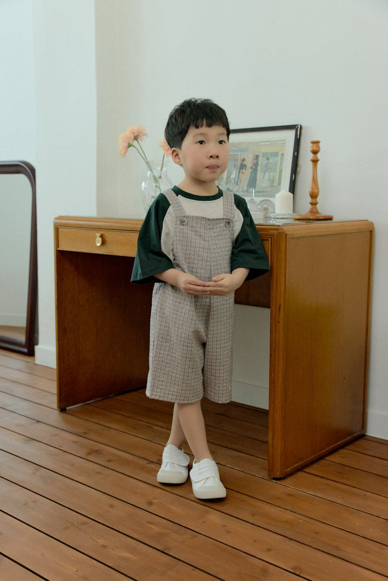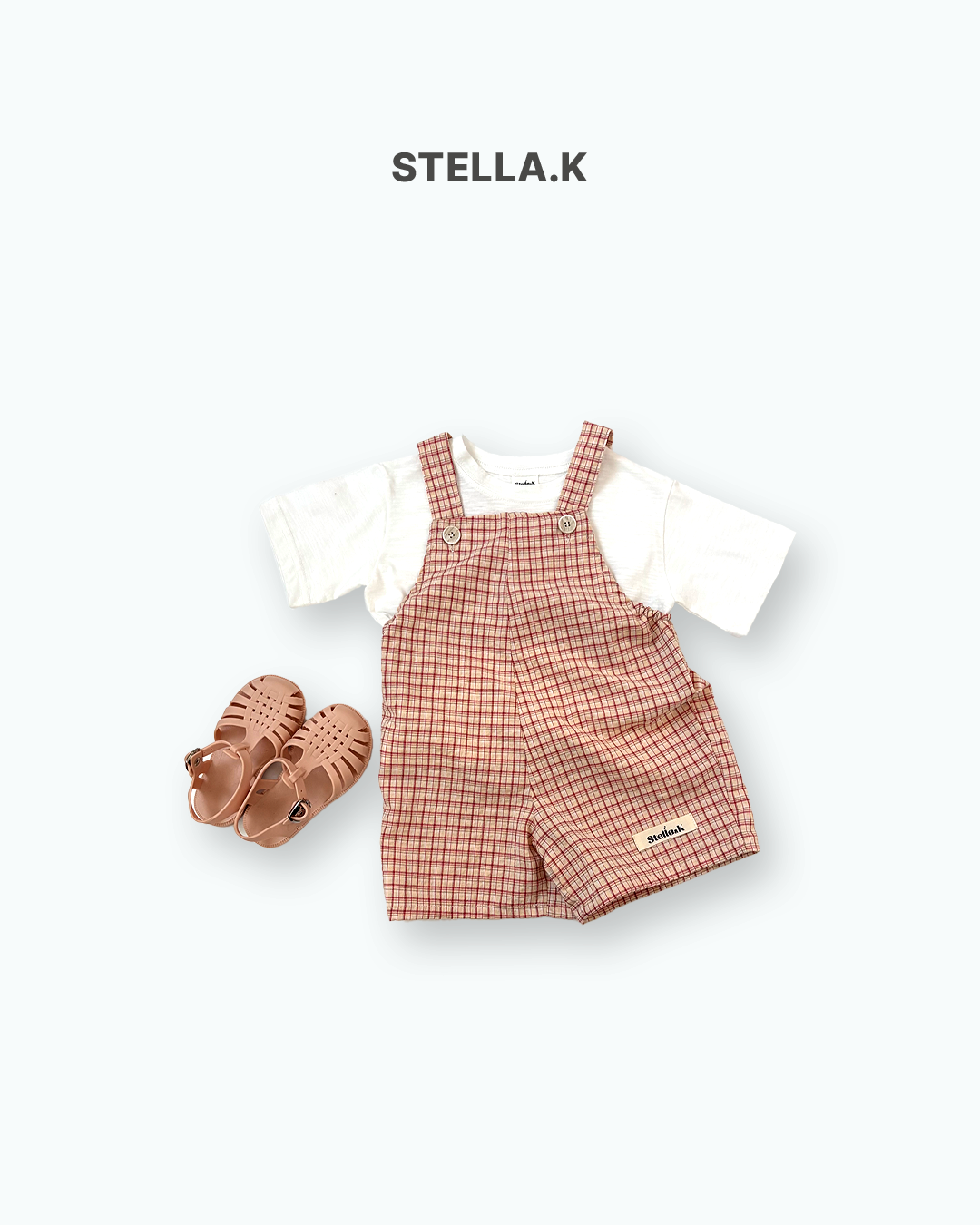 Stellak 褲子 스텔라앤케이 체크멜빵반바지