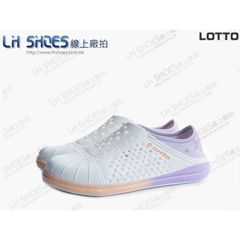 LOTTO 可踩後跟 女 洞洞鞋 白/紫 CM 22/25 (8249) 瑕疵特價