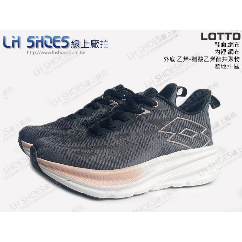 B品 LOTTO 輕量 賈卡 運動鞋 女鞋 黑/玫瑰金 CM 24 (5391)