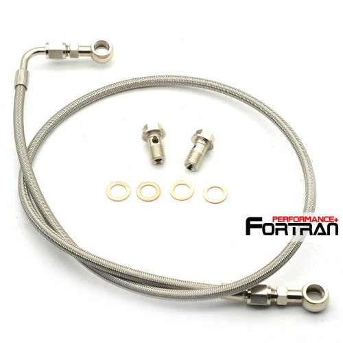 Application: Mitsubishi 4B11T Lancer EVOX 10 w/ Stock TD05H / TD05HA Kit Includes: -1 x 4AN braided steel oil feed line w/ Teflon inner. -1 x banjo bolt kit with 1.5 mm restrictor for turbo oil feed. -1 x banjo bolt kit to engine