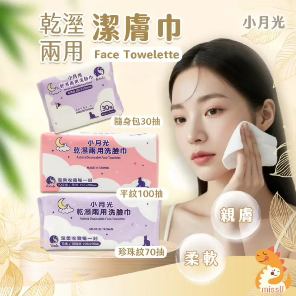 小月光 乾濕兩用潔膚巾 「卸妝+保養+清潔」 兩款可選