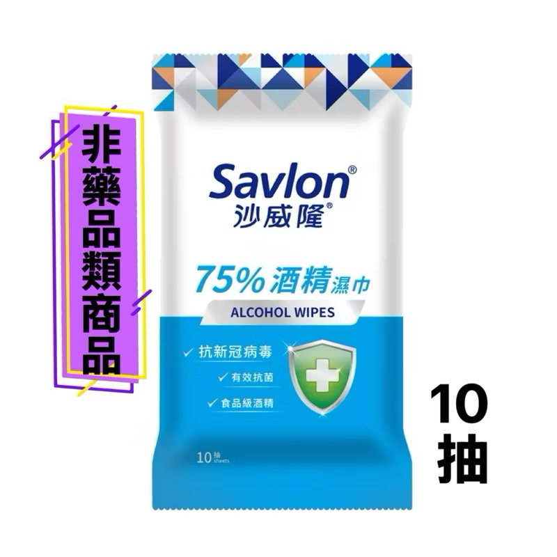 Savlon 沙威隆 75%酒精濕巾 10抽(非藥品類商品)