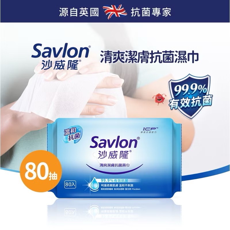 沙威隆 清爽潔膚抗菌濕巾 80抽